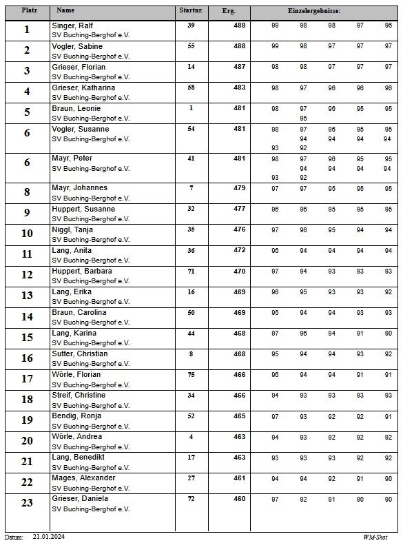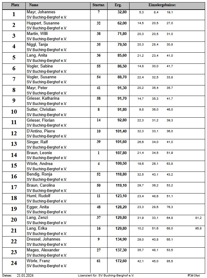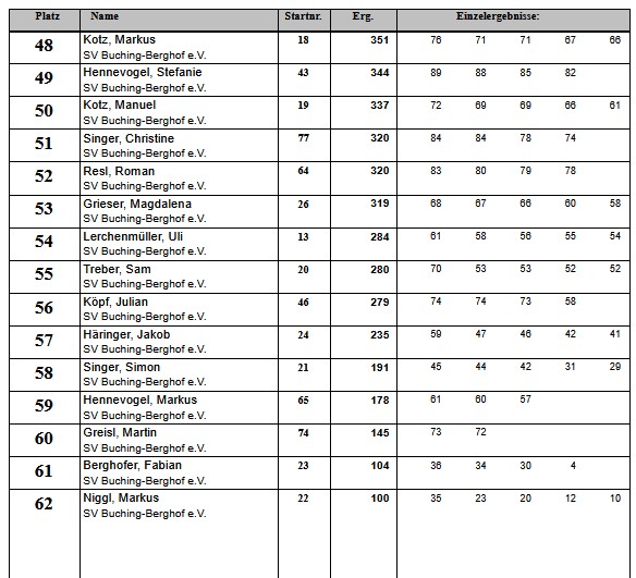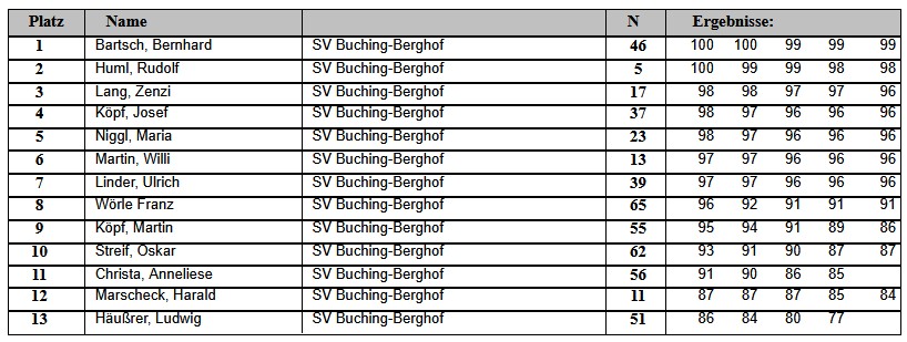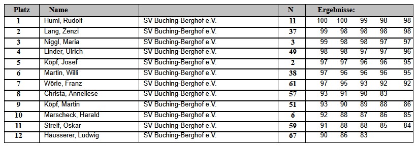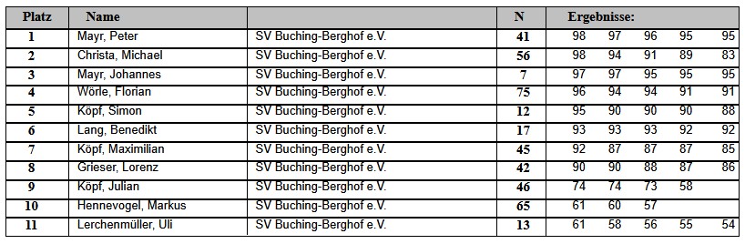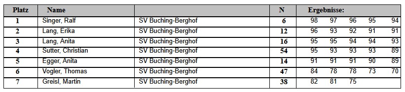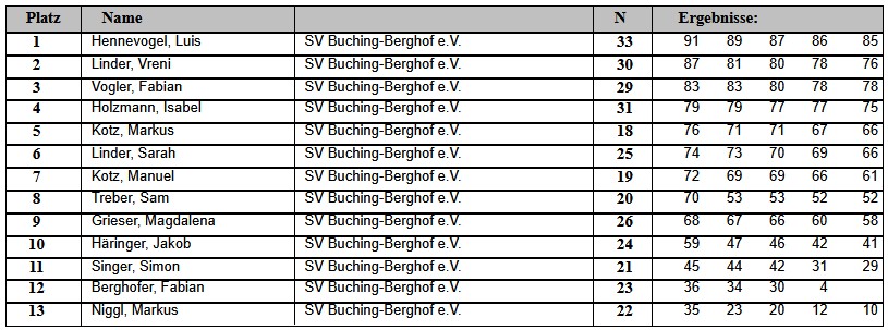 Aktuelle Ergebnisse des SV Buching-Berghof e.V.