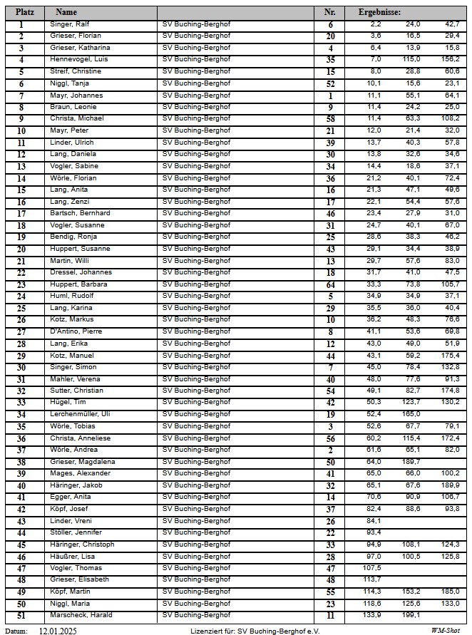 Mit Mausklick auf die Ergebnisliste können alle Schießergebnisse eingesehen und als PDF auch heruntergeladen werden.